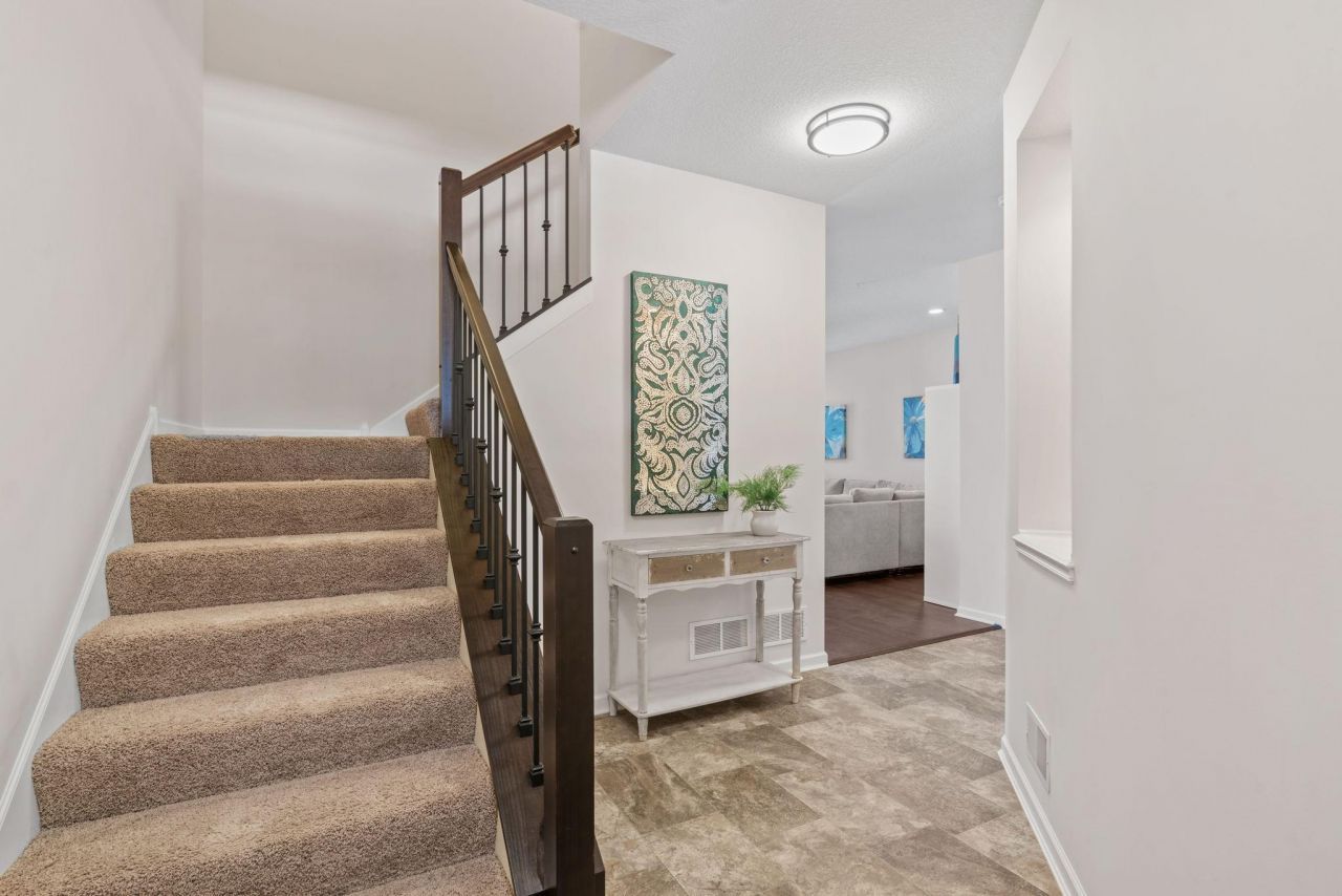 Discover the perfect balance of sophisticated design and maintenance-free living. Designed to offer the scale and privacy of a single-family home, this property stands out with its soaring high ceilings and updated, contemporary finishes throughout. The main level is an entertainer's dream, featuring an open-concept layout and an abundance of oversized windows that bathe the home in natural light. For those seeking a quiet escape, the private patio located directly off the dining area, provides a serene outdoor retreat to enjoy at the end of the day. The upper level is thoughtfully configured with three spacious bedrooms, including a primary with a luxurious ensuite bathroom equipped with double sinks, a dedicated walk-in shower, and a separate deep soaker tub. Every room in this unit emphasizes usable space and modern comfort, ensuring a living experience that is as functional as it is beautiful. Situated in a prime Blaine location, this home offers incredible convenience with multiple parks within walking distance and a variety of shopping and dining options (including Target and Walmart) just a 5-10 minute drive away. Residents can enjoy a truly turn-key lifestyle, as the HOA dues cover professional snow removal, lawn care and more. This is a rare opportunity to enjoy spacious living in a vibrant community, at an approachable price point!
